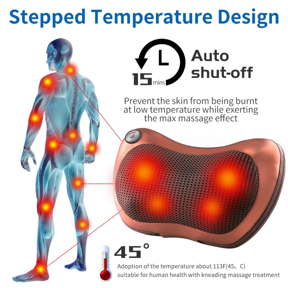 Disfruta de un masaje profundo y revitalizante con esta almohada de masaje shiatsu de diseño ergonómico, ideal para aliviar dolores en el cuello, espalda, abdomen, piernas y más.