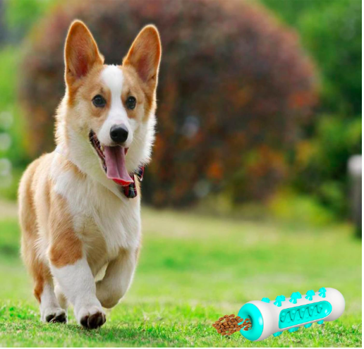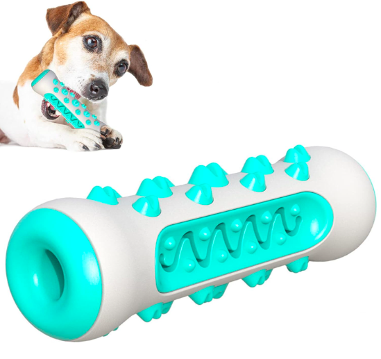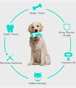 Diseño en forma de hueso, se puede poner pasta de diente o los bocadillos favoritos de su perro en la ranura y limpiar a fondo el sarro, cuidando los dientes de tú perro