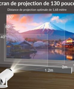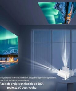 Proyector de teléfono con rotación de 180° y pantalla gigante: Función única de rotación de 180°, lo que le permite dirigir el haz del proyector en todas las direcciones, incluso hacia el techo. Ideal para una experiencia cinematográfica cómoda desde su cama, es capaz de proyectar una imagen nítida, creando una pantalla muy amplia en su espacio personal